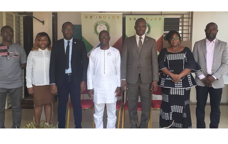 Mr. DIASSO paid a courtesy visit to SOAC on January 16, 2020. This visit follows the audience he had given to the President of SOAC, Mr. Aboubacry BARO, in September 2019. He was accompanied by his Secretariat Head, Ms. Odile KINDE. He was welcomed by the Director General, Marcel GBAGUIDI, who had with him one of the SOAC Board of Directors, Mr. Gabriel AHISSOU, from Benin, in mission in Côte d'Ivoire, as well as all the staff.